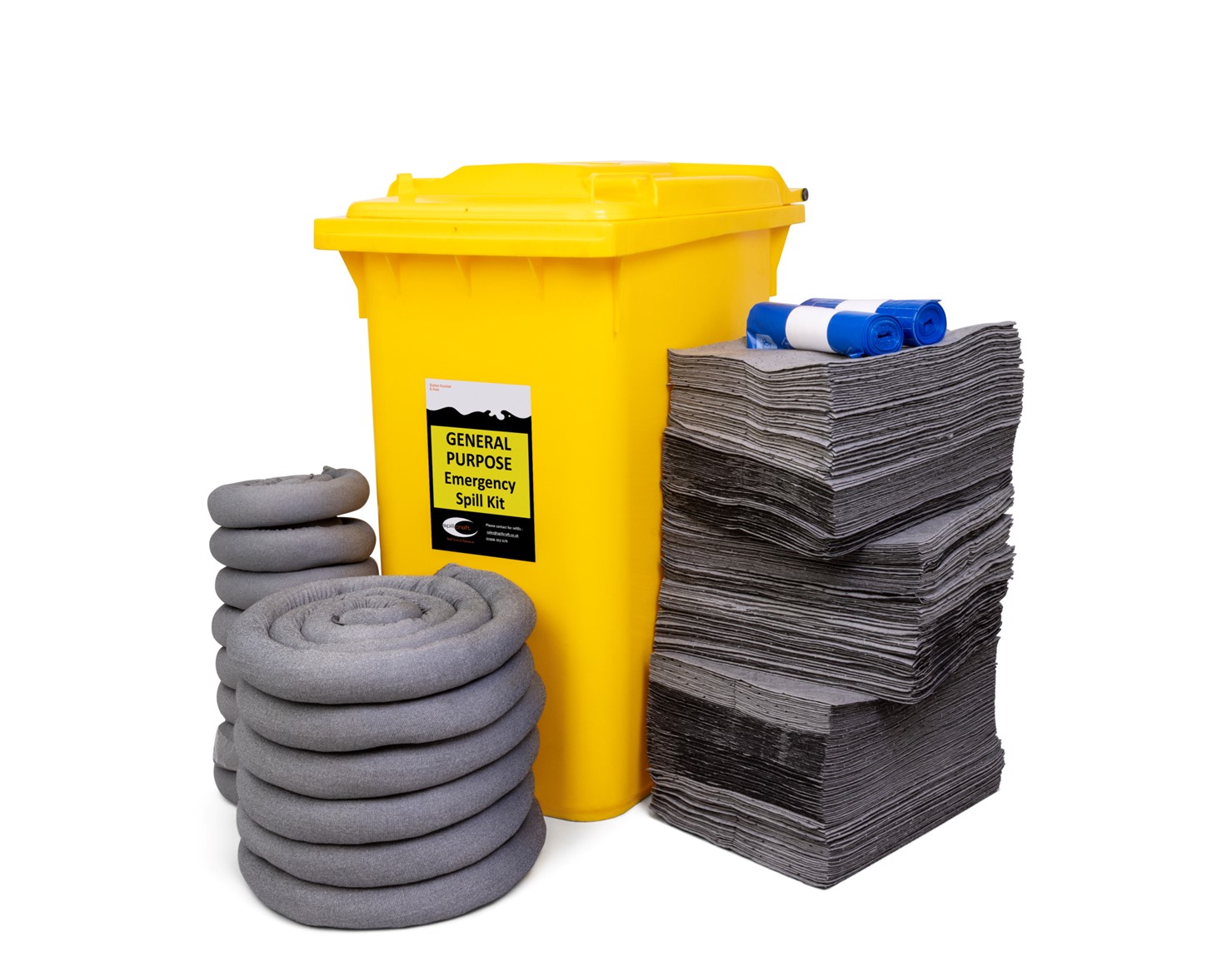 the 360Ltr General Purpose Spill Kit is supplied in a strong, mobile wheeled bin, the kit can be easily positioned close to spill-risk areas, allowing for rapid deployment when incidents occur. The durable bin protects the contents from damage and contamination while ensuring the kit remains highly visible and accessible at all times.