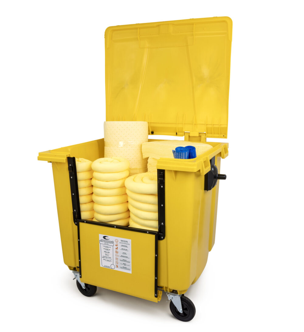 500Ltr Chemical Emergency Spill Kit – Our 500Ltr Chemical Spill Kit contains a large amount of absorbents suitable for emergency spills up to 500ltrs. Containing yellow absorbents which follow industry standards for chemical spills as they are highly visible. Additional care should be taken with chemical spills to ensure you have all the correct PPE to protect yourself, as well as making others aware of the emergency situation, and protecting the environment from hazardous liquids.