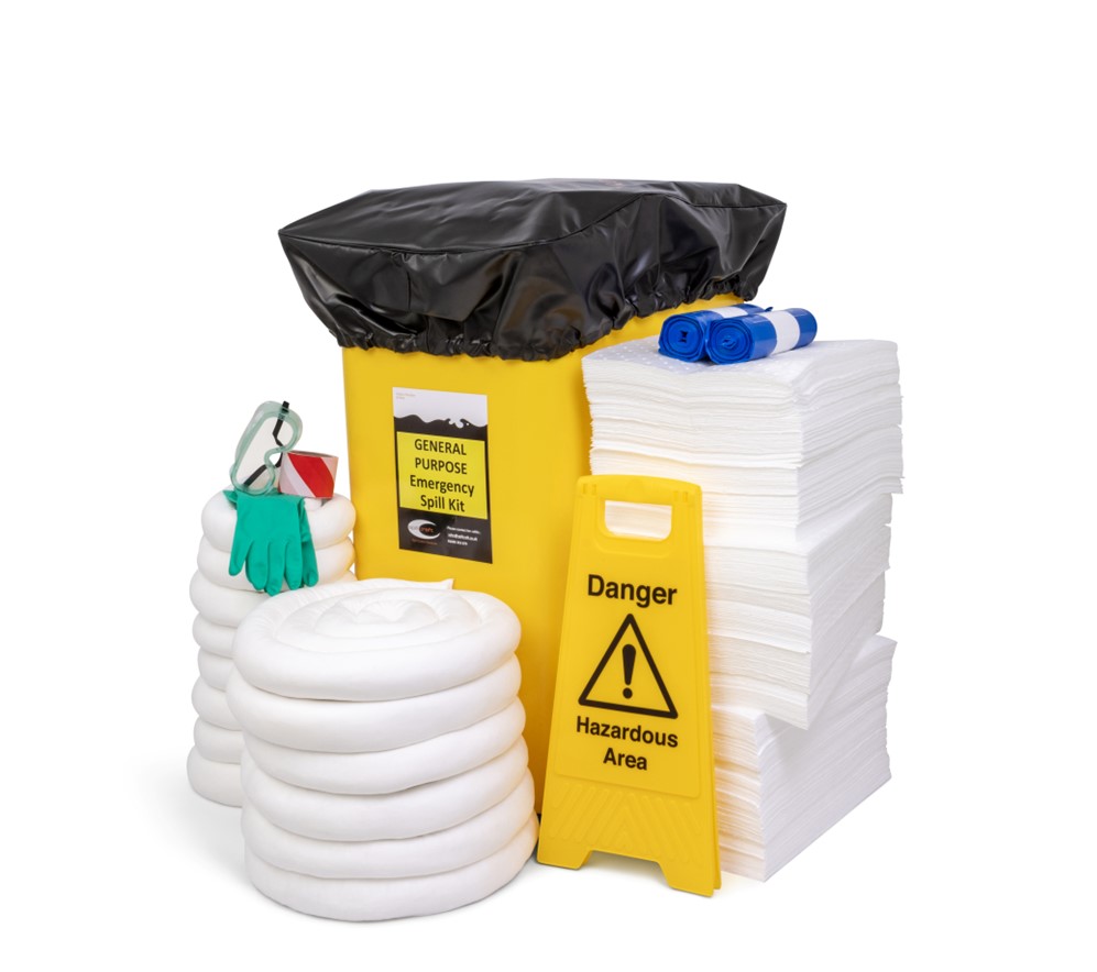 This premium kit includes high-visibility spill response signage, personal protective equipment (PPE), and a fitted audit cover. The audit cover protects the contents from unwarranted usage and provides a clear visual indication that the kit is complete and compliant. The oil-only, hydrophobic polypropylene absorbents selectively absorb hydrocarbons while repelling water, making the kit suitable for both indoor and outdoor use, including wet conditions.